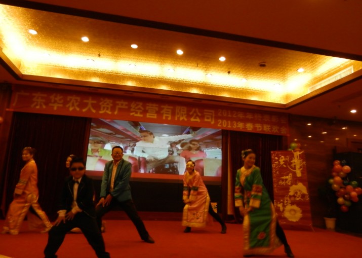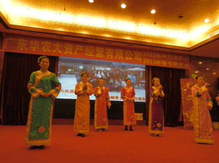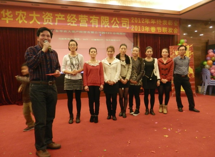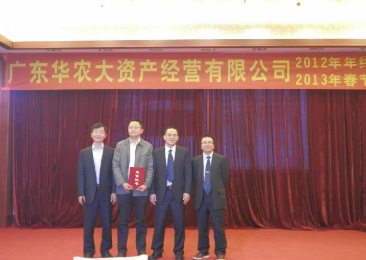2012年1月25日下午,廣東華農大資產經營有限公司聯歡大會在廣州源華酒店隆重舉行,我司作為屬下企業參與了本次會議。大會共分為三個環節,第一個環節:年度優秀集體與個人的表彰大會;第二個環節:各企業節目表演;第三個環節:晚宴與抽獎。