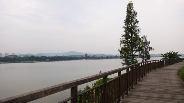 小伙伴們有說有笑,一邊徒步鍛煉,時而抬頭仰望碧藍的天空,呼吸著清新的空氣,再做個深呼吸,還有那股鄉土的味道就輕輕的鉆進了心里,觸動了對大自然依戀的心弦。再一邊沿途欣賞美景,茂密的林陰小道,河光山色,交相輝映。大家就這樣相互間交流感情,盡情舒懷,釋放工作帶來的壓力,有的步伐矯健,有的步調輕盈,有的走走停停,只為記錄下身邊的美景。