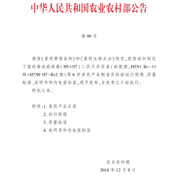 信息來源:中華人民共和國農業農村部公告 第99號//www.moa.gov.cn/govpublic/SYJ/201812/t20181213_6164848.htm