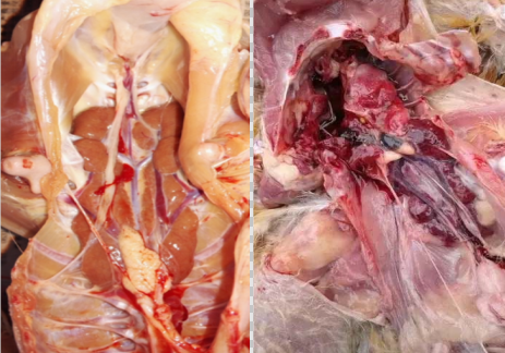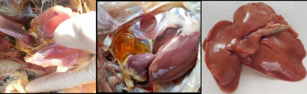 觀(guan)察(cha)雞群狀況(kuang),根據發(fa)病日齡、臨床(chuang)癥狀、流行病學和(he)死(si)亡規(gui)律;解剖察(cha)看病理變(bian)化,若有上述(shu)特征性病變(bian)則可初(chu)步(bu)診斷(duan);進一(yi)步(bu)診斷(duan)還需要采集病料(主(zhu)要肝、腎、肺臟等病變(bian)組織),實驗室做核酸檢測。