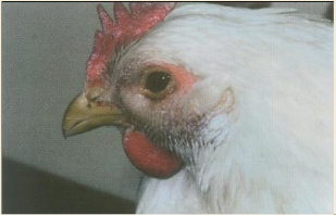 IC在雞(ji)育成(cheng)階(jie)段和(he)產(chan)蛋階(jie)段高發,各個(ge)品種雞(ji)對Apg都易感(gan),尤(you)其是8-16周齡階(jie)段育成(cheng)及產(chan)蛋雞(ji)群。老齡雞(ji)感(gan)染較(jiao)為嚴(yan)重。發病初期(qi)主要表現為采食量(liang)和(he)飲水量(liang)輕微下降,打噴嚏,流出的(de)鼻液先為清亮色,三到(dao)四天后(hou)轉為白(bai)色膿性鼻涕,并伴著流淚,眼(yan)腫大,嚴(yan)重時(shi)整個(ge)頭(tou)部腫大,眼(yan)睛(jing)內陷,部分(fen)(fen)蛋雞(ji)眼(yan)睛(jing)失明。IC的(de)一個(ge)特(te)征是潛伏期(qi)短,接種培養物(wu)或分(fen)(fen)泌物(wu)后(hou)24-48h內即可發病。